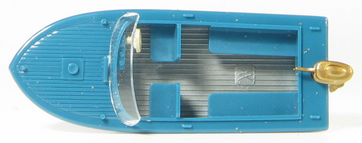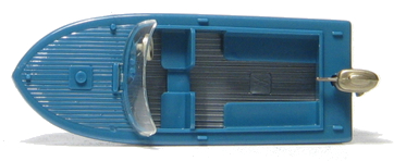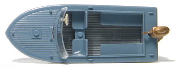 Anhänger mit seitlicher Halterung, Sitze mit graviertem Steg, Frontscheibe des Bootes klein.