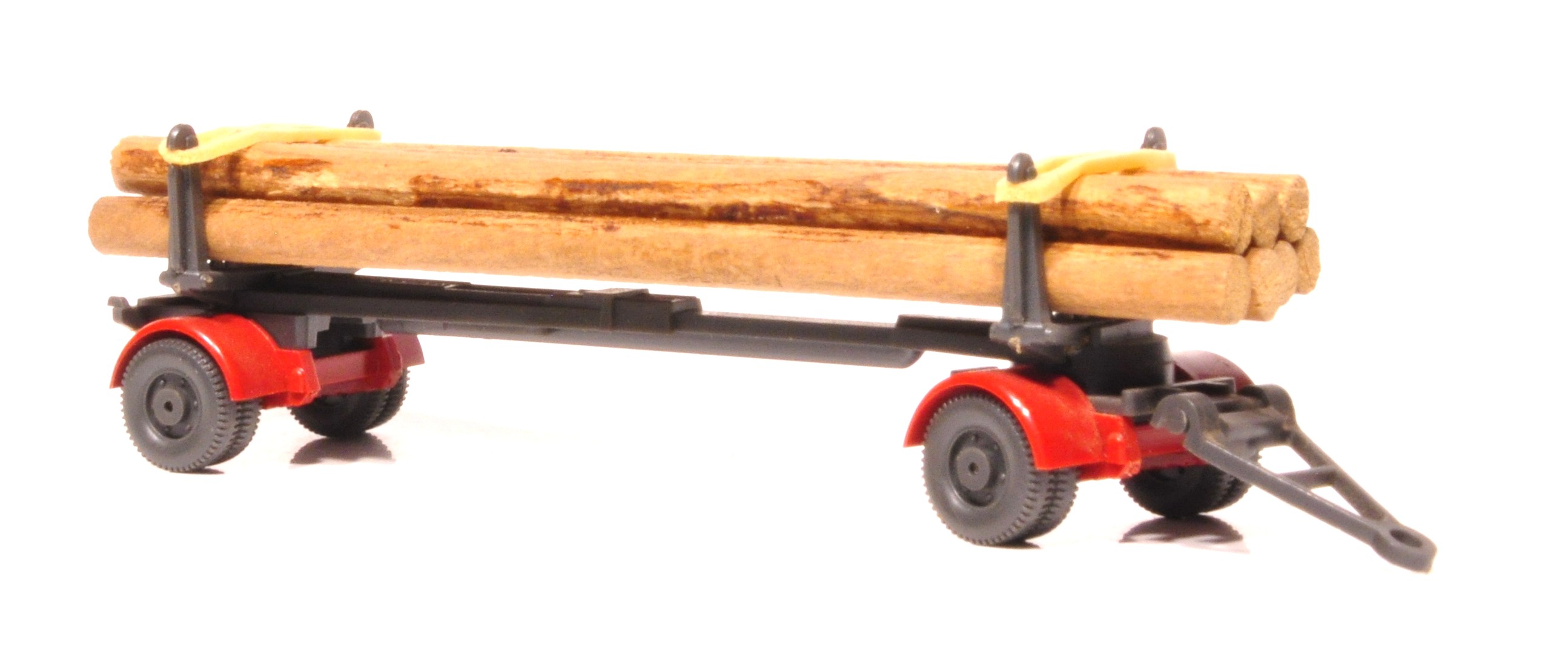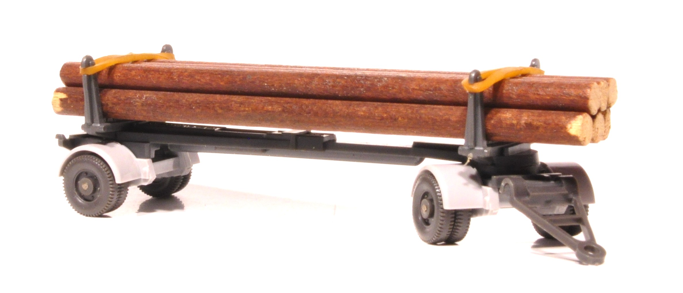 Ladung 7 helle oder dunkle Rundhölzer oder gesägte Kanthölzer, befestigt mit Drahtschlaufen oder Gummibändern.