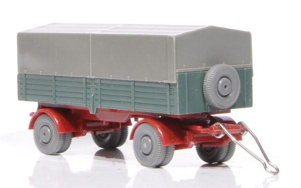 Anhänger 2-achsig mit Zwillingsräder, mit Plane, Pritsche und erhöhter Stirnwand, Plastikdeichsel,