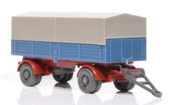 Anhänger 2-achsig mit Zwillingsräder, mit Plane, Pritsche mit erhöhter Stirnwand, Plastikdeichsel,