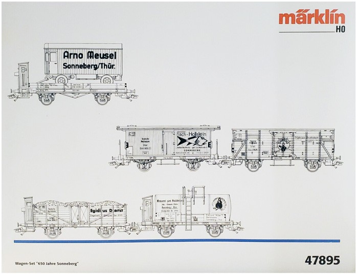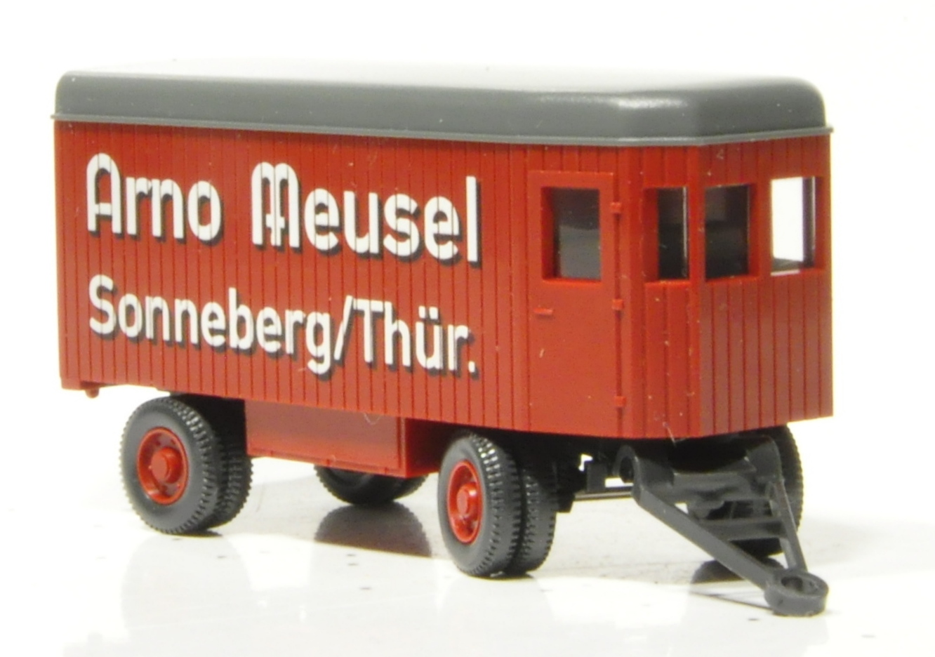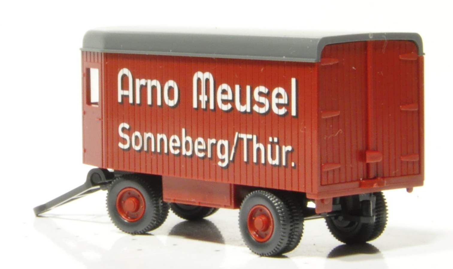 Aufdrucke seitlich weiß mit schwarzem Schlagschatten "Arno Meusel Sonneberg/Thür.".