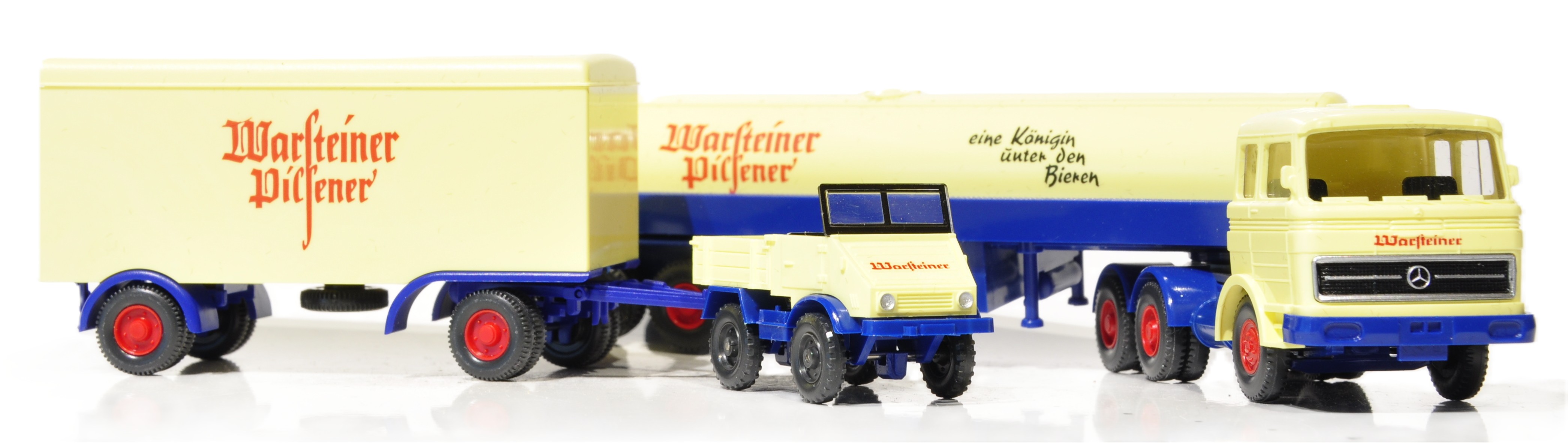 Inhalt mit 3 Modellen mit "Warsteiner"-Beschriftung.