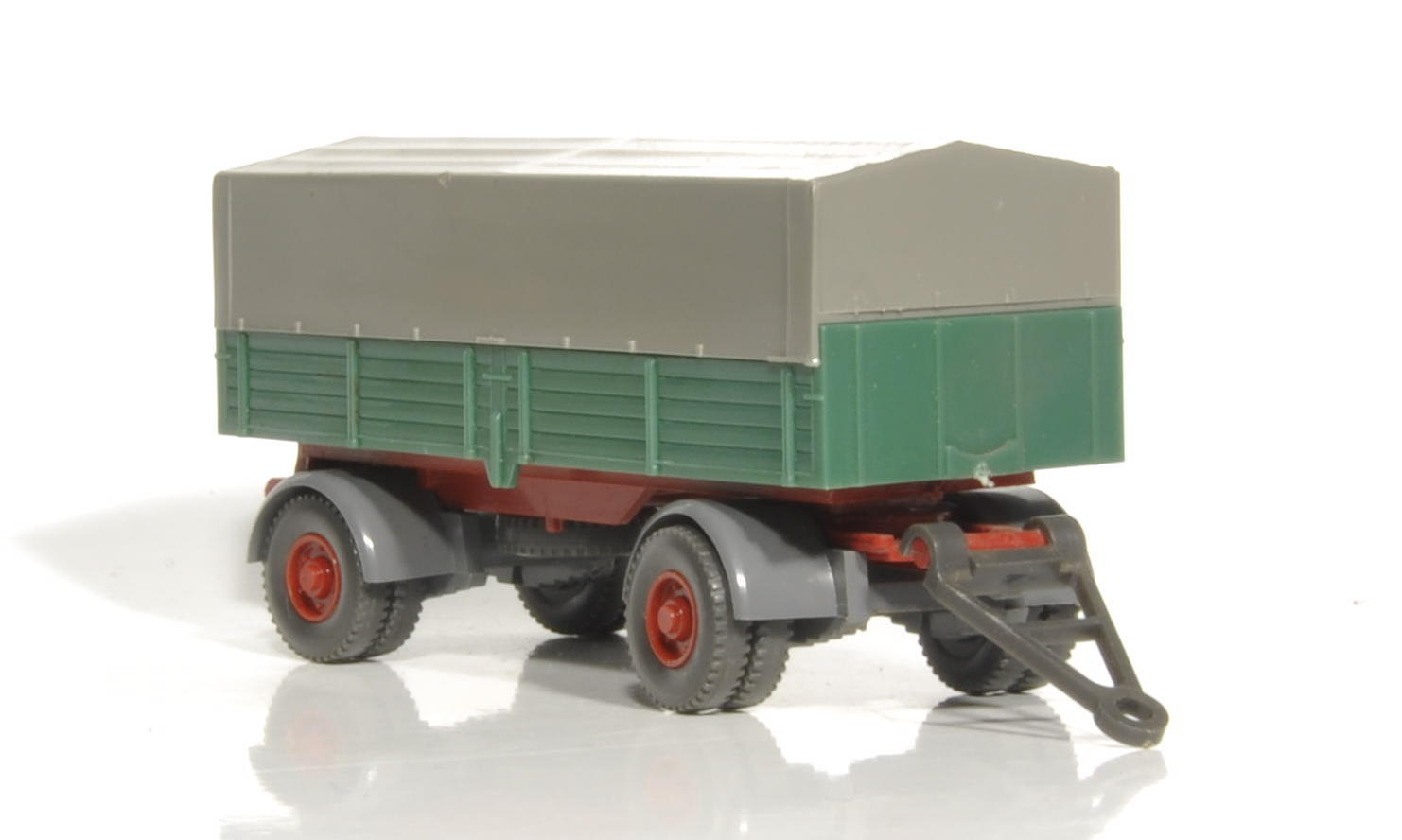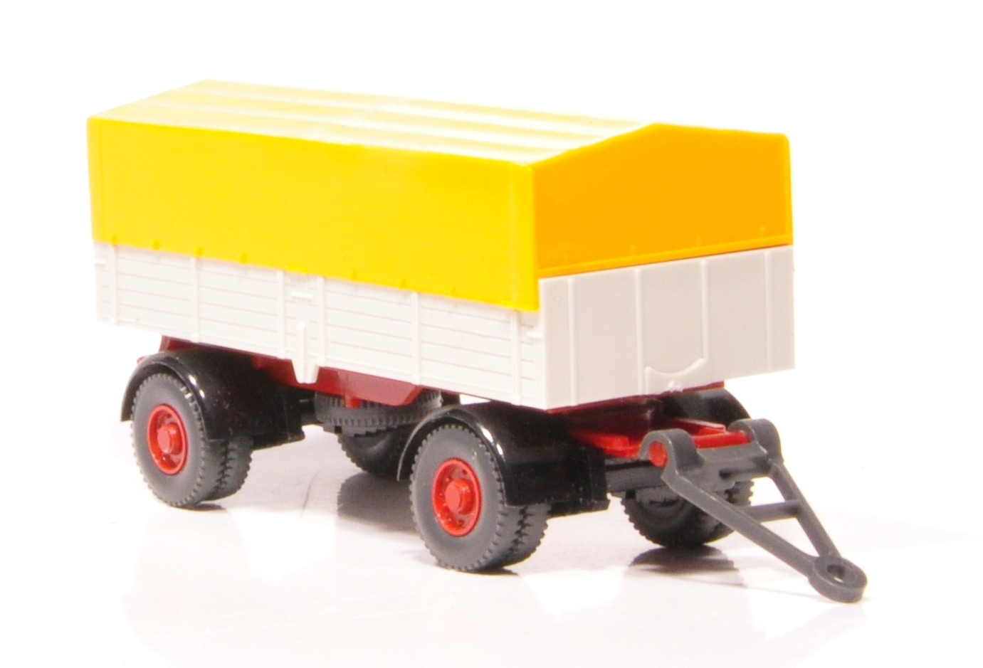 Anhänger 2-achsig mit Zwillingsräder, mit Plane, Pritsche mit erhöhter Stirnwand, Plastikdeichsel,